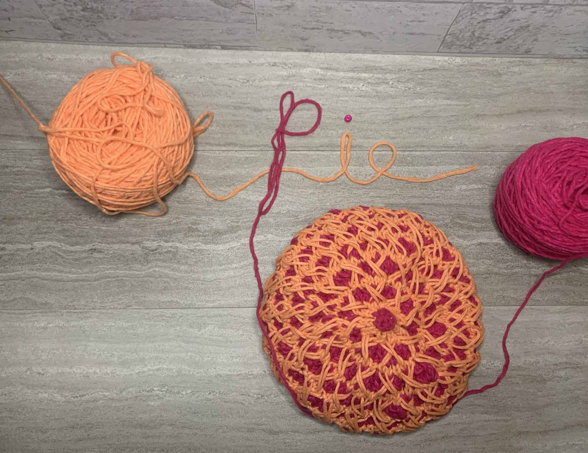 For my hats, (yes, I made two of them – the first one decreases needed work) I used two solids.